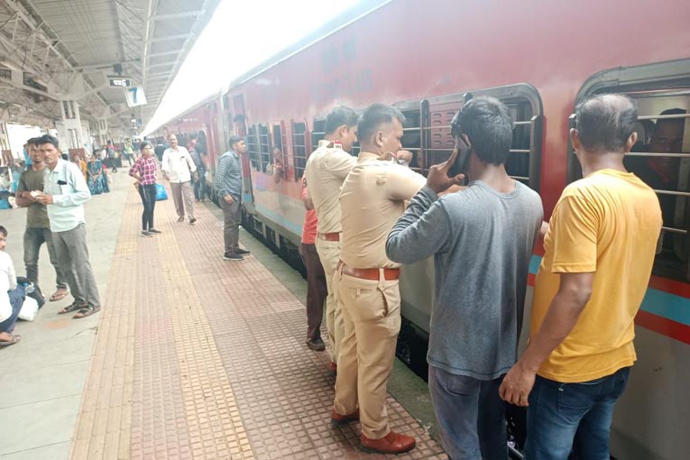 एकस्प्रेस गाड्यांमध्ये अडकलेल्या प्रवाशांच्या मदतीला धावून आले पोलीस