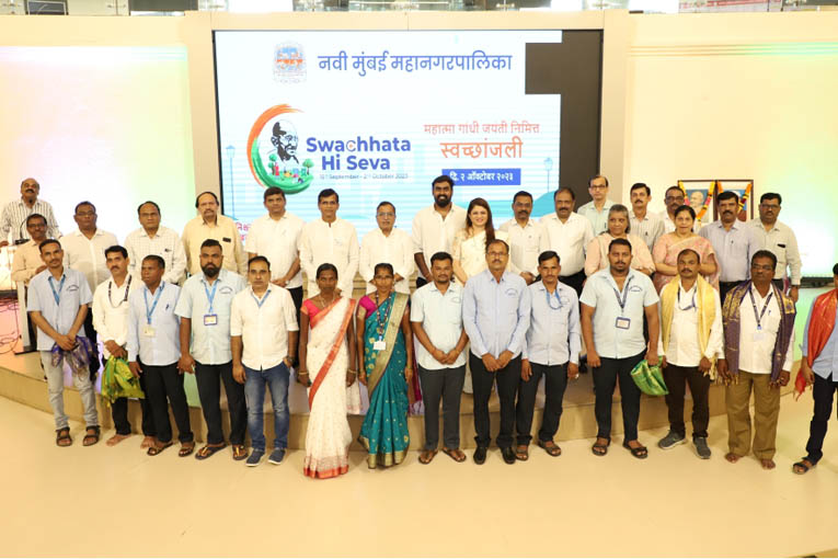 महात्मा गांधी जयंती तसेच लालबहादूर शास्त्री जयंती निमित्त या दोन्ही महापुरुषांच्या प्रतिमापुजनाने कार्यक्रमाचा शुभारंभ झाला. ‘स्वच्छता ही सेवा' उपक्रमांतर्गत १५ सप्टेंबर पासून महात्मा गांधी जयंतीपर्यंत आपण स्वच्छताविषयक विविध उपक्रम राबविलेले असून १ लाख ८३ हजारहुन अधिक विद्यार्थी सहभागाने यशस्वी झालेली स्वच्छ चित्रकला स्पर्धा, २६ हजारहून अधिक नागरिकांनी घेतलेली स्वच्छतेची डिजीटल शपथ तसेच शहरात आठ विभागांमध्ये १ लाख १४ हजारहुन अधिक नागरिकांनी एकाचवेळी घेतलेली सामुहिक स्वच्छता शपथ आणि खारफुटी स्वच्छता मोहीम अशा ३ भव्यतम आणि आगळ्यावेगळ्या कार्यक्रमांची विक्रमी नोंद ‘बेस्ट ऑफ इंडिया रेकॉर्डस्'मध्ये झालेली आहे. सदरचे यश नवी मुंबईकर नागरिकांच्या स्वच्छताविषयक जागरुकतेचे आणि एकजुटीचे यश आहे. एकंदरीतच स्वच्छता ‘नवी मुंबई'चा ब्रँड होण्यामागे तसेच नवी मुंबईच्या आजवरच्या सातत्यपूर्ण नावलौकिकात स्वच्छताकर्मी, महापालिकेचे अधिकारी-कर्मचारी यांच्याप्रमाणेच स्वच्छतेविषयी जागरुक नागरिक, लोकप्रतिनिधी, प्रसारमाध्यमे अशा सर्वच घटकांच्या नेहमीच मिळणाऱ्या अनमोल योगदानाबद्दल अतिरिवत आयुवत सुजाता ढोले यांनी आभार मानले.