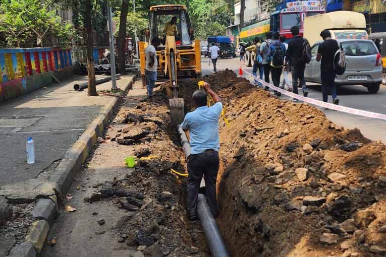 नवीन जलवाहिनी टाकण्याचे काम सुरु