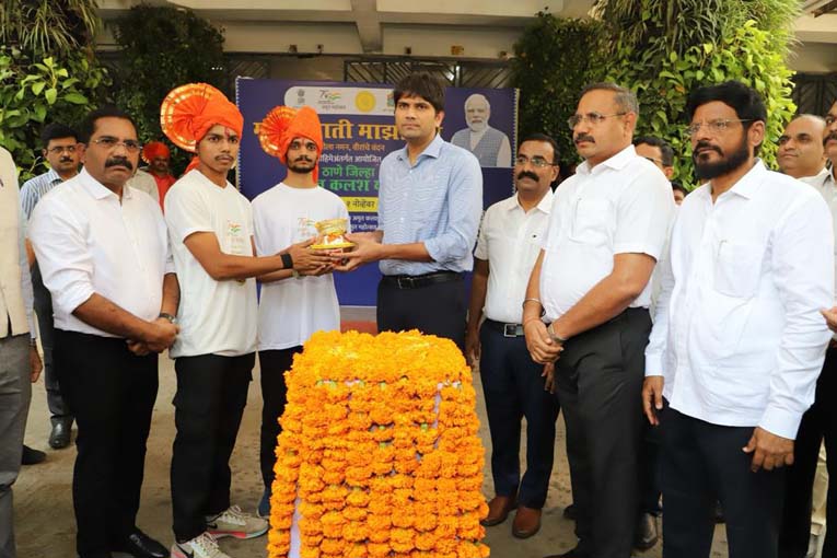 राज्यगीताच्या सलामीने ठाणे शहराचा अमृत कलश मुंबईकडे रवाना