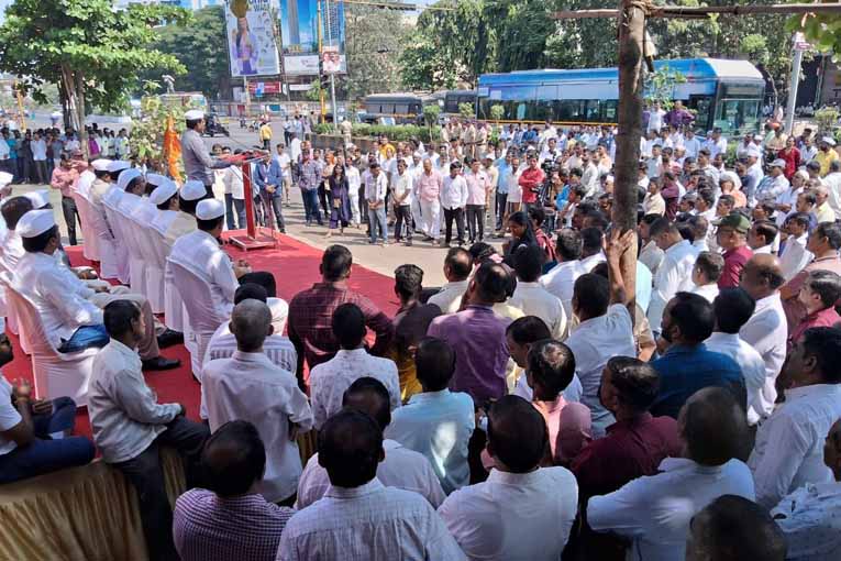 मराठा समाजाला आरक्षण मिळण्याच्या मागणीसाठी विशेषतः मनोज जरांगे-पाटील यांच्या सुरु असलेल्या आमरण उपोषणाला तमाम माथाडी कामगारांनी ‘मुंबई कृषि उत्पन्न बाजार समिती'च्या आवारातील कामे २७ ऑवटोबर रोजी दिवसभर बंद ठेऊन पाठिंबा व्यक्त केला. यावेळी एपीएमसी मधील माथाडी भवन येथे सभा आयोजित केली होती, या सभेत नरेंद्र पाटील आणि आ. शशिकांत शिंदे बोलत होते.