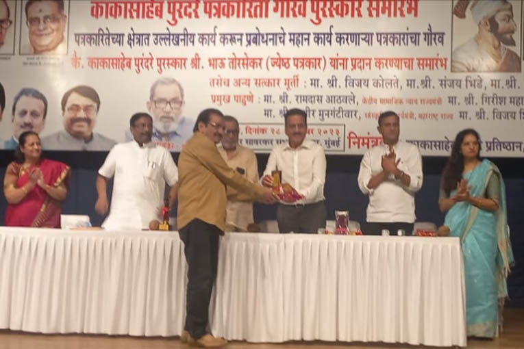 २८ ऑवटोबर रोजी दादर येथील स्वातंत्र्यवीर सावरकर सभाग्रहात, काकासाहेब पुरंदरे पत्रकारीता पुरस्कार वितरण समारंभात राज्याचे कॅबिनेट मंत्री ना.गिरीश महाजन यांच्या हस्ते श्री. ठाणगे यांचा सन्मान करण्यात आला.