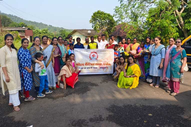 पनवेल : ‘संवेदना चॅरिटेबल संस्थे'तर्फे पनवेल जवळील पिंपळवाडी वाझे येथील आदिवासी पाडा तसेच नेरे येथील शांतीवन कुष्ठरोग केंद्रातील हॉस्पिटल, तेथेच वास्तवात असलेले कुष्ठरोगी, तेथील वृध्दाश्रम, आधारगृहात इ. ठिकाणी दिवाळी फराळ वाटप तसेच तेथील परिसरात गरज असलेले तीन सोलर पॅनेल दिवाळी निमित्ताने ११नोव्हेंबर रोजी भेट देण्यात आले. यावेळी मधुरा गवाणकर हिचा वाढदिवस आजी आजोबांसोबत केक कापून साजरा करण्यात आला.
