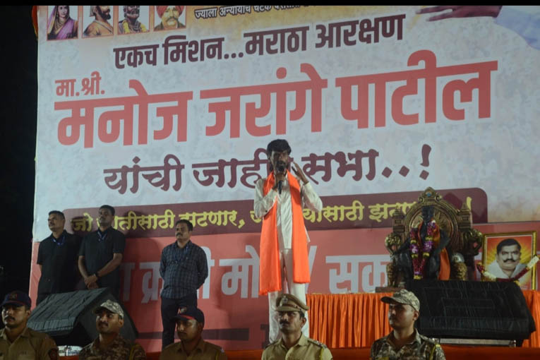 २००१ साली मराठा आरक्षणासाठी जारी केलेल्या कायद्यात थातुरमातुर सुधारणा करून आपल्या समोर हा सुधारित कायदा तीन वेळा आणला गेला.मात्र यात मराठा समाजाचं नुकसान असल्याने आपण हा कायदा नाकारला . हैद्राबाद येथील कुणबी नोंदी सापडत आहेत.मात्र त्या उर्दू भाषेत असल्याने याबाबत शासनाकडे सविस्तर मागणी केली.आता अकरा हजार नोंदी मिळाल्याचे समितीने जाहीर केले आहे.मात्र प्रत्यक्षात दीड लाख नोंदी सापडल्या आहेत. वेळ आल्यास याविषयी माहिती जनतेसमोर ठेवेल असे जाहीर करत जरांगे पाटील यांनी आरपार भूमिका घेण्याचा मानस व्यक्त केला आहे. अन्न पुरवठा मंत्री छगन भुजबळ यांच्यावर अप्रत्यक्ष तोंडसुख मिश्किल शैलीत त्यांनी घेतले.आपण सरकारचे प्रतिनिधी आहात मंत्री असल्याने जातीयतेचे राजकारण करू नये असा सल्ला दिला.मुंबई दौरा करताना मंत्रालय कसे आहे,विमान कधी उडतात,हे सर्व बघायचे असे जाहीर करत त्यांनी अप्रत्यक्ष इशारा दिल्याने मानले जात आहे.मराठा समाजाने मतभेद टाळावे ,आरक्षण मिळाल्यावर काय राजकारण करायचे ते करा.असे बजावत छगन भुजबळ यांच्यावर नाव न घेता टोले लगवत आक्रमक शैलीत देखील त्यांचा समाचार घेतला.त्यांनी आपल्याला नेते शत्रू मानत आहेत.त्यांना शत्रू मानू द्या.मी स्वतःहून कोणावर टीका केली नाही पण आरक्षणावर कोणी आला तर त्याला सुट्टीच नाही असा सज्जड इशारा त्यांनी दिल्यावर उपस्थित जनतेत एकच जल्लोष करण्यात आला.आरक्षण मिळाल्यावर आपला विजय झाला असे समजू मात्र जर आरक्षण नाही मिळाले तर पुढील आंदोलनाची दिशा जाहीर करू असा इशारा सरकारला दिला आहे.आरक्षण मिळाले की मुक्ती घेईल असेही जाहीर करत ओबीसी आरक्षण मिळायला लागलं तर वाद निर्माण केले जात आहेत. मात्र कोणतेही डाव यशस्वी होऊ द्यायचे नाही.ही जबाबदारी आता मराठा समाजावर आहे. जे नेते वादाची ठिणगी पाडू पाहत आहेत त्यांनी एक गोष्ट लक्षात घेतली पाहिजे त्यांचे वय किती,अनुभव किती हे ओळखून काम केलं पाहिजे असा सवाल करत मी येडपट आहे माझ्या नादाला नको लागु असेही आपल्या ग्रामीण शैलीत त्यांनी सांगितले.आरक्षण अंतिम टप्प्यात असल्याने आता राग अपमान पचवा, असा सल्ला उपस्थितांना देत त्यांनी मराठे एक येत नाही. असे बोलणाऱ्यानी घणसोली मधील उपस्थितीची गर्दी बघावी असे आव्हान केले.घणसोली येथील संभाजी महाराज मैदानातील या सभेला महिला देखील मोठ्या संख्येने उपस्थित होत्या.महविकास आघाडीच्या नेत्यांच्या समवेत एकनाथ शिंदे शिवसेना गटातील स्थानिक पदाधिकारी या सभेला उपस्थित होते. सभास्थानी येण्यापूर्वी मनोज जरंगे पाटील यांनी माथाडी भवनात दिवंगत माथाडी कामगार नेते आमदार अण्णासाहेब पाटील यांच्या पुतळ्याला अभिवादन करत अण्णासाहेब पाटील यांच्याप्रती कृ