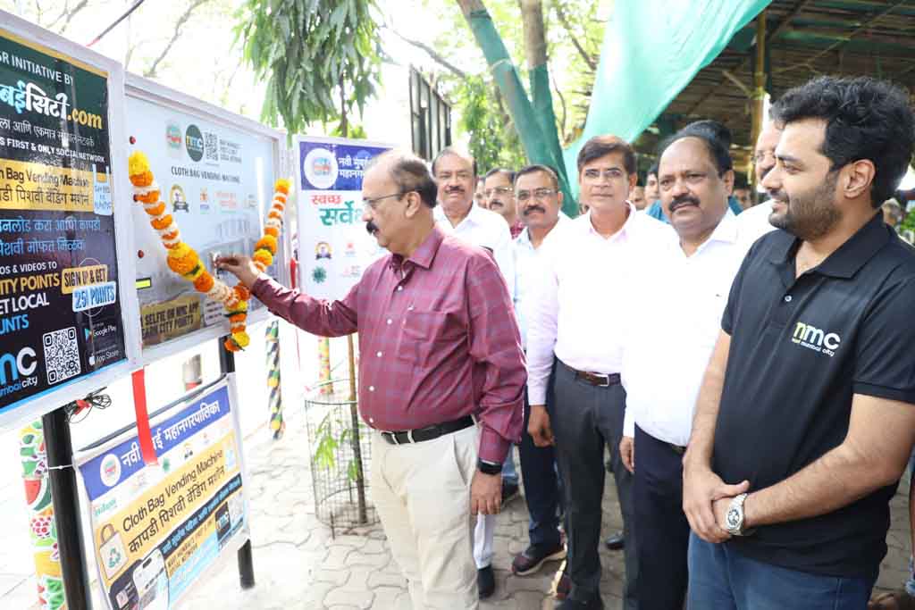 वाशी मध्ये कापडी पिशवी वेंडींग मशीन महापालिका आयुक्त राजेश नार्वेकर यांच्या हस्ते कार्यान्वित
