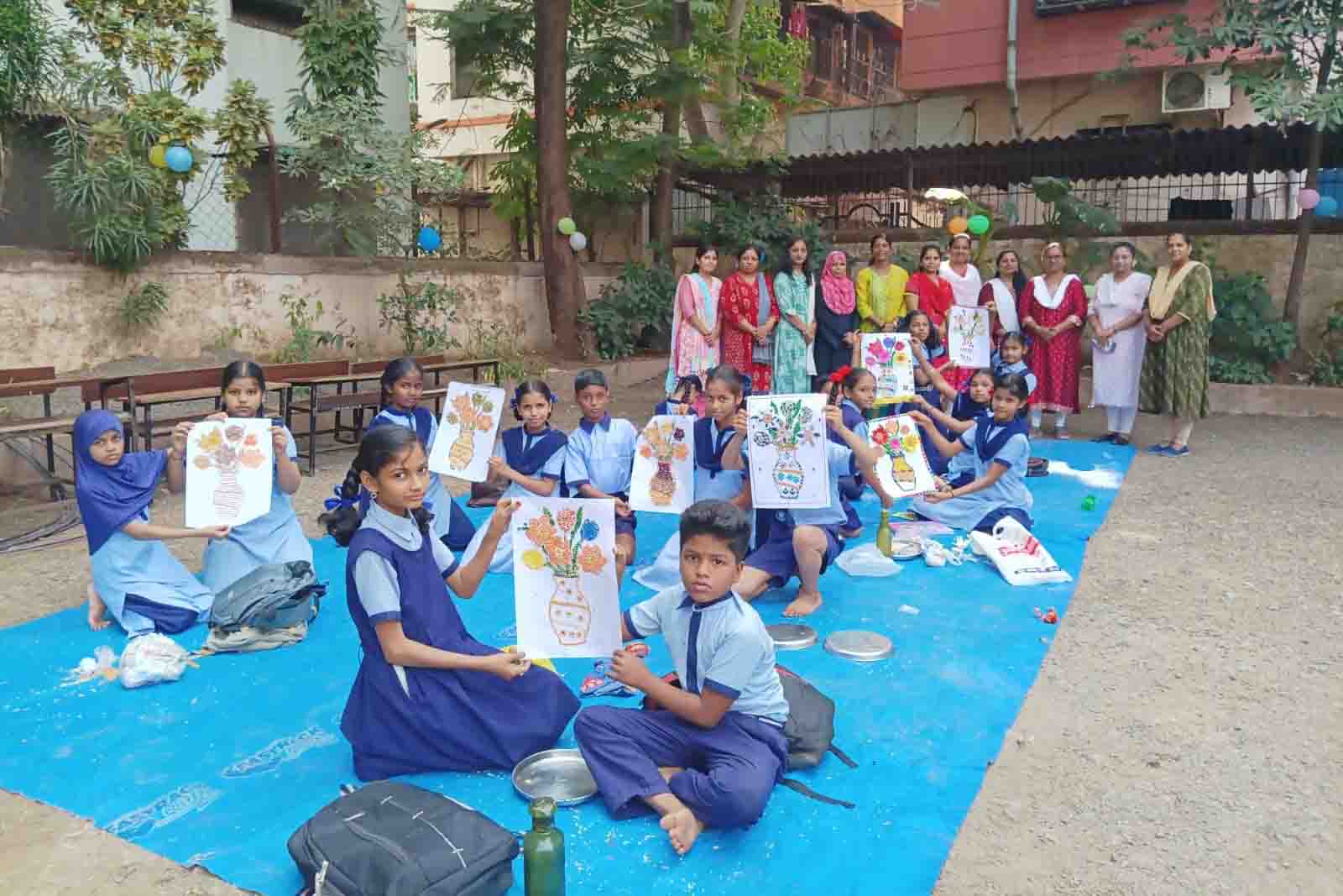 पोदीच्या महानगरपालिका शाळेमध्ये कोलाज काम व टाकाऊ वस्तुंपासून टिकाऊ वस्तू स्पर्धा