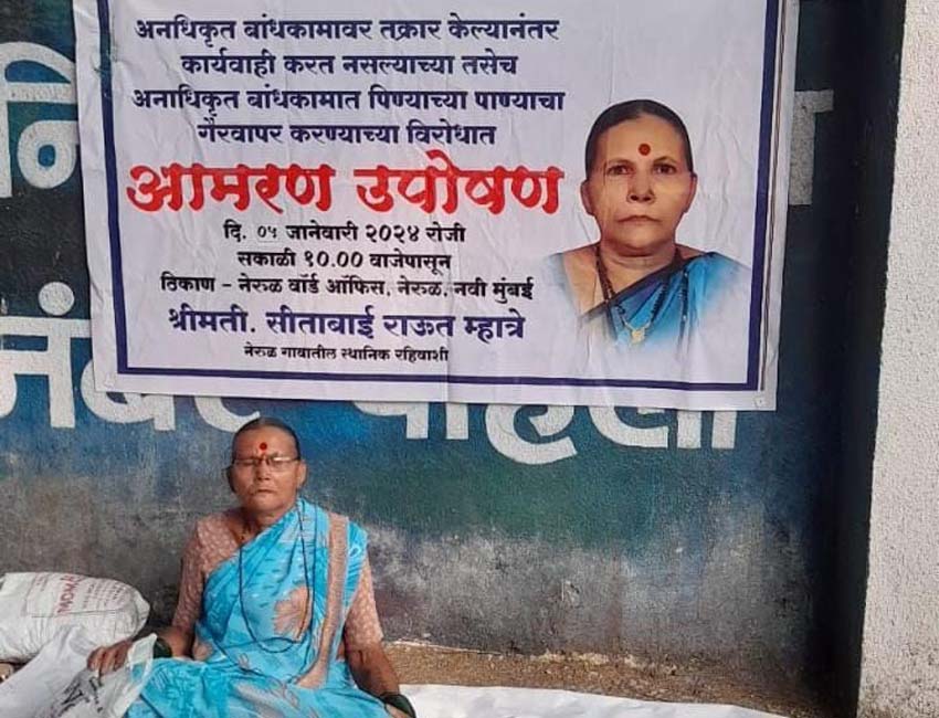 नवी मुंबई महापालिका क्षेत्रातील अनधिकृत बांधकामाची दखल घेत मुंबई उच्च न्यायालयाने महापालिका प्रशासनाचे कान टोचले आहेत. तर अनधिकृत बांधकामे रोखण्यासाठी महापालिका आयुक्तांनी वेळो-वेळी आदेश काढले आहेत. दुसरीकडे महापालिका क्षेत्राती वाढत्या अनधिकृत बांधकामांना आळा घालण्यासाठी अनधिकृत बांधकामे सुरु असतानाच त्यावर कारवाई करा तसेच बेकायदा बांधकामांना अभय देणाऱ्या अधिकाऱ्यांवर देखील कारवाई करुन गुन्हे दाखल करा, असे आदेश राज्याचे मुख्यमंत्री एकनाथ शिंदे यांनी नुकतेच नागपूर मधील हिवाळी राज्य विधीमंडळ अधिवेशन दरम्यान दिले आहेत. मात्र, या सर्व आदेशांना केराची टोपली दाखवत नवी मुंबई शहरात अधिकारी वर्गाच्या संगनमताने राजरोसपणे अनधिकृत बांधकामे सुरु आहेत. बेकायदा बांधकामांविरुध्द काही नागरिक तक्रारी करीत असतात. मात्र, अनधिकृत बांधकामे करण्यात विकासक, राजकीय नेते आणि अधिकारी वर्गाची मोठी साखळी असल्याने तक्रारदारांच्या अर्जांना केराची टोपली दाखवली जाते. नेरुळ विभागात देखील अनधिकृत बांधकामांकडे दुर्लक्ष झाल्याचे समोर आले आहे. नेरुळ भागात अनधिकृत बांधकाम सुरु असून, या बांधकामात अवैधरित्या पाणी नळ जोडणी घेऊन पाण्याचा गैरवापर केला जात असल्याने नेरुळ येथील स्थानिक ज्येष्ठ महिला सीताबाई म्हात्रे यांनी महापालिका नेरुळ विभाग कार्यालयात तक्रारी केल्या आहेत. मात्र, सदर तक्रारींबाबत वारंवार पाठपुरावा करुन देखील कुठलीच कारवाई केली जात नाही. त्यामुळे नेरुळ गावातील ज्येष्ठ महिला सीताबाई म्हात्रे यांनी नेरुळ विभाग कार्यालय बाहेर आमरण उपोषण आंदोलन सुरु केले आहे. दरम्यान, अनधिकृत बांधकामावरोधात एक ज्येष्ठ महिला उपोषणाला बसल्याने महापालिका मधील कामचुकार अधिकाऱ्यांचा कारभार चव्हाट्यावर आला आहे.