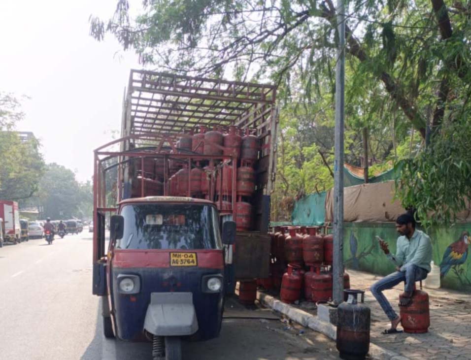 रस्त्यावर गॅस सिलेंडर हाताळणी