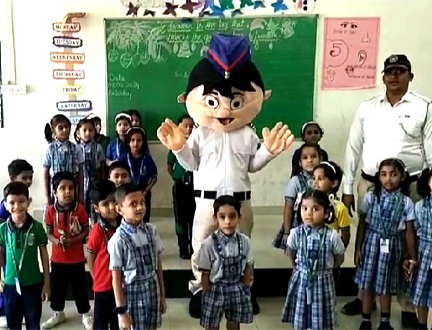 वाहतूक पोलीसांनी विद्यार्थ्यांना दिले वाहतूकीच्या नियमांचे धडे