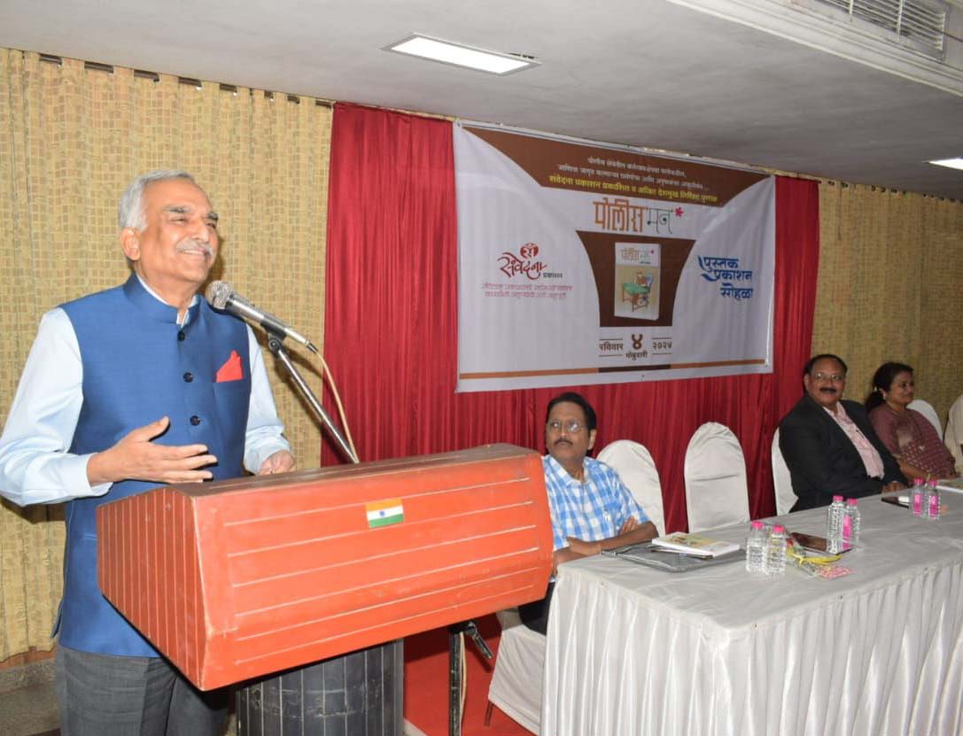 नवी मुंबई : पोलीस खात्यातील सेवेत लाभलेल्या अनुभवांचा आकृतीबंध असलेल्या पोलीस मन या अजित देशमुख लिखित पुस्तकाचे प्रकाशन रविवारी महाराष्ट्र राज्याचे माजी पोलीस महासंचालक शिवानंदन यांच्या हस्ते झाले. यावेळी व्यासपीठावर पुस्तकाचे लेखक सेवानिवृत्त पोलीस अधिकारी अजित देशमुख, साहित्यिक लेखिका धनश्री लेले कवी प्रमोद जोशी व प्रकाशक नितीन हिरवे, सेवानिवृत्त पोलिस अधिकारी आणि पुस्तक प्रेमी मोठ्या संख्येने उपस्थित होते.