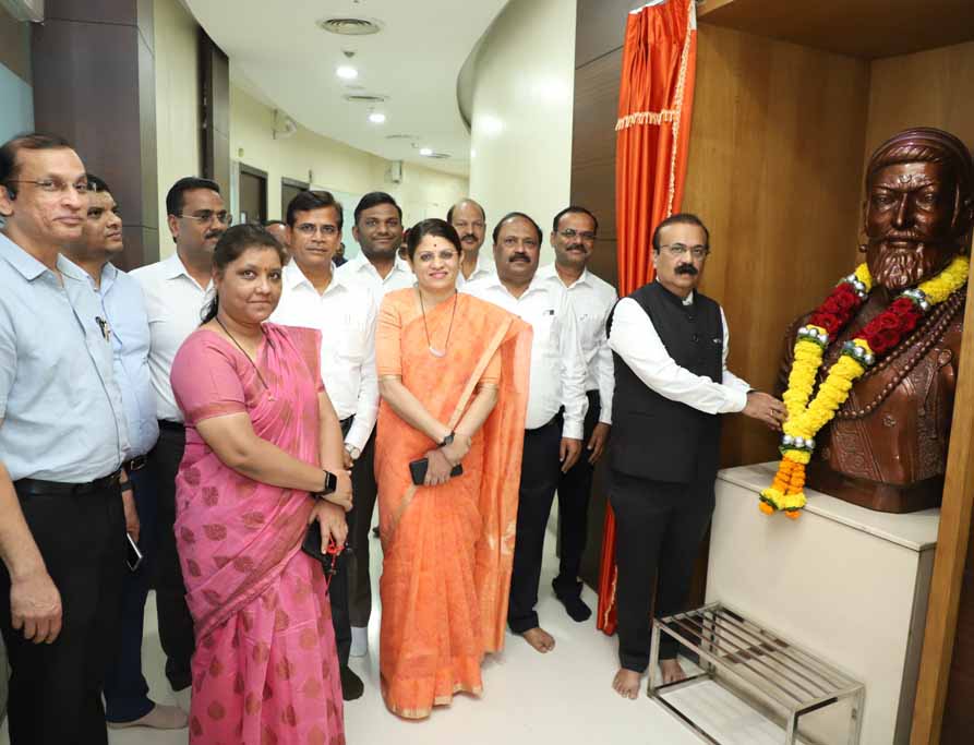 नवी मुंबई महापालिका मुख्यालयातील ॲम्पिथिएटर येथे छत्रपती शिवाजी महाराज यांच्या प्रतिमेला तसेच पाचव्या मजल्यावरील राजमाता जिजाऊ सभागृहाच्या प्रवेशद्वाराजवळ असलेल्या छत्रपती शिवाजी महाराज आणि राजमाता जिजाऊ यांच्या पुतळ्याला पुष्पमालिका अर्पण करुन अभिवादन करण्यात आले.