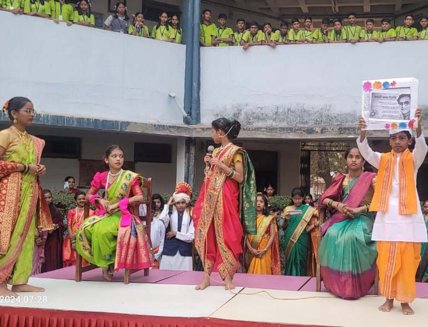 नवी मुंबई : कविश्रेष्ठ कुसुमाग्रज यांचा जन्म दिवस निमित्त २७ फेब्रुवारी रोजी विद्यालयात यंदा इयत्ता ६ वी मधील विद्यार्थी वर्ग सभेने एक निर्धार करून कुसुमाग्रज यांचा जन्म दिवस एक उत्सव म्हणून साजरा केला. प्रमुख पाहुणे, दीप प्रज्वलन, सूत्र संचालन, काव्य आणि भाषण सादरीकरण, अध्यक्ष निवड, सूचक, अनुमोदक आणि आभार प्रदर्शनदेखील सर्व मुलांनीच केल्यानं सर्व उपस्थीत विद्यार्थी, शिक्षक आणि पालक वर्गाने टाळ्यांच्या गजरात मुलांचे अभिनंदन केले.