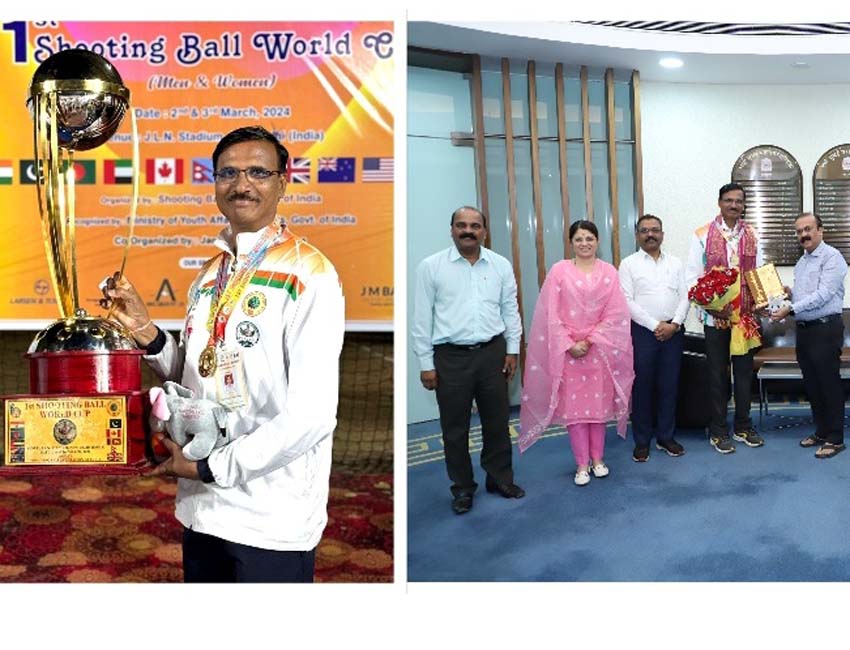 नवी मुंबई : नवी दिल्ली येथे नुकत्याच पार पडलेल्या पहिल्या विश्वचषक शुटिंगबॉल स्पर्धेत भारतीय शुटिंगबॉल संघाने कॅनडाच्या शुटिंगबॉल संघावर मात करीत शुटिंगबॉलचे पहिले विश्वविजेतेपद पटकाविले. या संघाचे प्रशिक्षक असलेले नवी मुंबई महापालिकेचे क्रीडा अधिकारी रेवप्पा गुरव यांचे आयुक्त राजेश नार्वेकर यांनी समस्त नवी मुंबईकर नागरिकांच्या वतीने अभिनंदन करीत सत्कार केला. प्रशिक्षक म्हणून गुरव यांच्या उत्तम मार्गदर्शनामुळे नवी मुंबई शहराचे नाव राष्ट्रीय पातळीवर उंचावल्याबद्दल कौतुक केले.