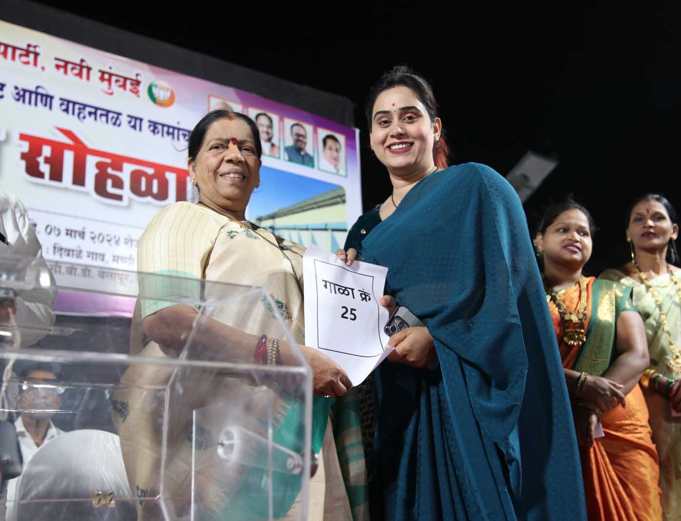 महिला दिनानिमित्त ३२ महिलांना लॉटरी पध्दतीने गाळे वाटप करुन सदर गाळ्यांच्या चाव्या आमदार सौ. मंदाताई म्हात्रे यांच्या शुभहस्ते सुपूर्द केल्या. यावेळी उद्घाटक म्हणून नवी मुंबई महापालिका आयुक्त राजेश नार्वेकर उपस्थित होते. याप्रसंगी महापालिका शहर अभियंता संजय देसाई, कार्यकारी अभियंता संजय पाटील, उपअभियंता अजय पाटील, कनिष्ठ अभियंता कांचन वानखडे, सहा. आयुक्त शशिकांत तांडेल यांच्यासह अनंता बोस, निळकंठ कोळी, तुकाराम कोळी, चंद्रकांत कोळी, सुरेखा कोळी, पांडुरंग कोळी, श्याम कोळी तसेच शेकडो ग्रामस्थ उपस्थित होते.