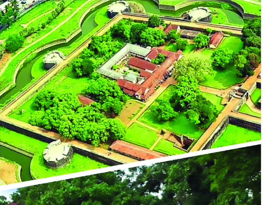 या किल्ल्याला सुंदर खंदकाने वेढलेले आहे जे या ठिकाणाच्या गूढ गुणवत्तेत भर घालते. पूर्वी किल्ल्याला मुख्य मैदानाशी जोडणारा ड्रॉब्रिज होता, पण आता त्याची जागा कायमस्वरूपी पुलाने घेतली आहे. खंदकाच्या बाजूने धावणारे जॉगिंग ट्रॅक पर्यटक आणि स्थानिक लोकांमध्ये संध्याकाळ आणि सकाळच्या धावण्यासाठी अत्यंत लोकप्रिय आहेत. लॅटराइट भिंतींसह चौकोनी आकाराचा किल्ला पाहण्यासारखा आहे त्याच्या सुंदर लँडस्केप रचनेमुळे.