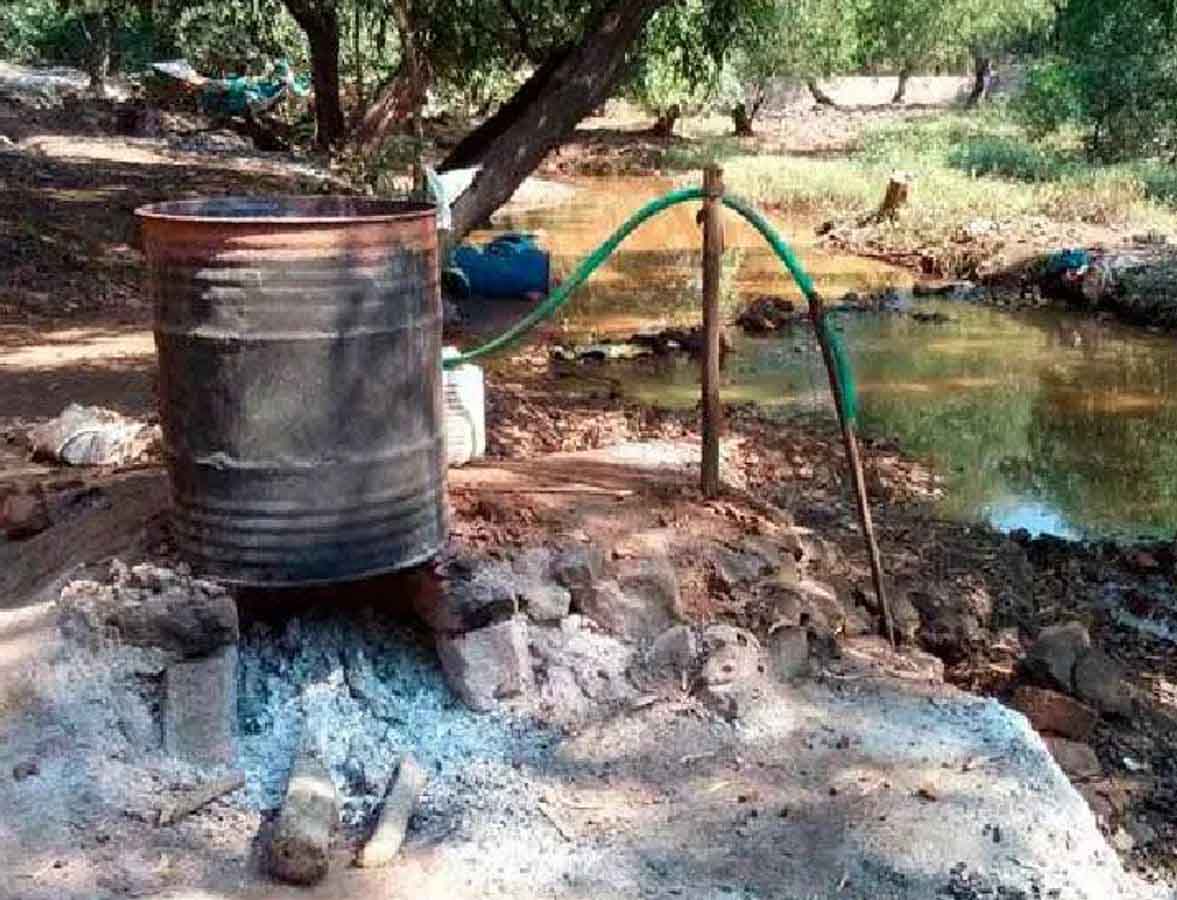 त्यामुळे पोलिसांनी त्याला ताब्यात घेऊन त्याठिकाणी सापडलेले १ हजार लिटर कच्या दारुने भरलेले ७ पिंप, ३० लिटर गाळून तयार केलेली गावठी दारु तसेच दारु निर्मितीसाठी आवश्यक असणारे साहित्य जप्त केले. त्यानंतर पोलिसांनी सदर ठिकाणी सापडलेले १हजार लिटर कच्ची दारु जागेवरच उध्वस्त केली आहे. त्यानंतर अनैतिक मनावी वाहतूक प्रतिबंधक कक्षाने काही अंतरावर सुरु असलेल्या दुसऱ्या हातभट्टी दारु तयार करण्याच्या अड्ड्यावर छापा मारला. मात्र, यावेळी पोलिसांची चाहुल लागल्याने तेथे अवैधरित्या हातभट्टीची गावठी दारु तयार करणारे अक्षय वाघेआणि बाब्या वाघे पळून गेले.
