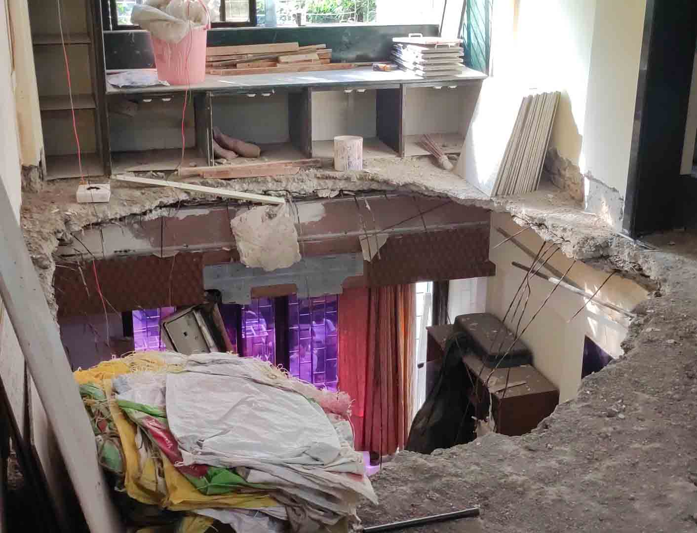 नवी मुंबई : वाशी, सेक्टर-२९ मधील भूखंड क्र.४९वर असलेल्या सुदामा सोसायटीमध्ये स्लॅब कोसळल्याची दुर्घटना ५ एप्रिल रोजी घडली आहे. सुदामा सोसायटीत इमारतीच्या दुसऱ्या मजल्यावर दुरुस्तीचे काम सुरु असताना या मजल्यावरील स्लॅब पहिल्या मजल्यावर कोसळला. सुर्देवाने सदर दुर्घटनेवेळी कूणीही जखमी न झाल्याने जीवितहानी झालेली नाही.