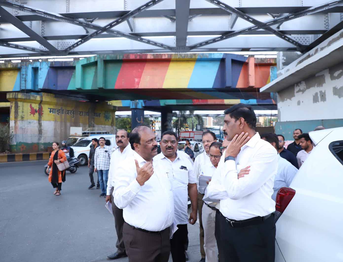 ठाणे-बेलापूर रोडवर सुरु असलेल्या उड्डाणपुलांवरील रस्ते डांबरीकरणाचे काम गुणवत्तापूर्ण होण्याप्रमाणेच विहीत वेळेत पूर्ण आणि वाहतुकीस अडथळा होणार नाही याची दक्षता करावे. रस्त्याच्या दुभाजकांमधील सुशोभिकरणासाठी लावलेली झाडे-झुडपे सुकलेली असल्यास त्याचे पुनर्राेपण करण्यात यावे, असे निर्देश डॉ. कैलास शिंदे यांनी दिले. तसेच भारतरत्न डॉ. बाबासाहेब आंबेडकर स्मारकातील सुविधांची पाहणी करताना आयुवतांनी तेथील साफसफाईमध्ये अधिक सुधारणा करण्याच्या सूचना करत पहिल्या मजल्यावरील व्हर्टिकल गार्डनच्या देखभालीकडे विशेष लक्ष देण्यास सुचविले.