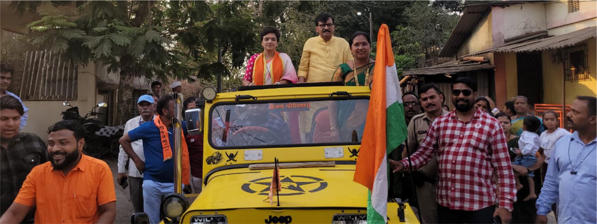 कल्याण : कल्याण लोकसभा मतदार संघात महाविकास आघाडीच्या उमेदवार वैशाली दरेकर यांच्या प्रचारासाठी मंगळवार 16 तारखेला शिवसेना उद्धव बाळासाहेब ठाकरे नेते संजय राऊत नेवाळी लगतच्या गोरपे गावात आले होते. या रॅलीत उमेदवार वैशाली दरेकर, नेते संजय राऊत व भाजप आमदार गणपत गायकवाड यांच्या पत्नी सुलभा गायकवाड दिसल्या. संजय राऊत, वैशाली दरेकर आणि सुलभा गायकवाड हे वाहनात एकत्र येत असताना कार्यकर्त्यांनी जेसीबीची पुष्पवृष्टी करून त्यांचे स्वागत केले.