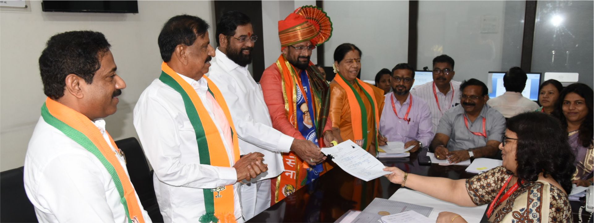 दरम्यान, नरेश म्हस्के यांचा उमेदवारी अर्ज भरताना नरेश म्हस्के आणि मुख्यमंत्री एकनाथ शिंदे यांच्यासोबत ज्येष्ठ नेते आमदार गणेश नाईक, आमदार सौ. मंदाताई म्हात्रे, आमदार प्रताप सरनाईक, माजी खासदार संजीव नाईक, डॉ. श्रीकांत शिंदे, ‘राष्ट्रवादीी'चे आनंद परांजपे, आमदार रविंद्र फाटक, शिवसेना उपनेते विजय नाहटा, आदिंसह ‘महायुती'मधील भाजपा, शिवसेना, राष्ट्रवादी आणि इतर घटक पक्षांचे पदाधिकारी आणि मोठ्या संख्येने कार्यकर्ते उपस्थित होते.