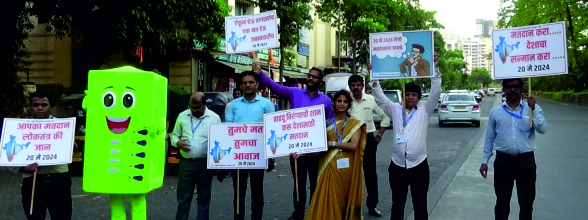 ‘मी मतदान करणारच, आपणही आपल्या मतदानासाठी सज्ज रहा', या आशयाचे मजकूर असलेले आणि त्यावर मतदान दिनांक २० मे २०२४ असे दर्शवणारे माहितीपत्रकाचेही वाटप मॅस्कॉटच्या हस्ते सर्व नागरिकांना करण्यात आले आणि लोकशाहीच्या उत्सवात मतदानाच्या दिवशी देशाच्या भविष्यासाठी मतदानाचा हक्क बजावून लोकशाही बळकट करावी, मतदारांनी कोणत्याही अमिषाला बळी पडू नये आणि सर्वानी न चुकता २० मे २०२४ रोजी अवश्य मतदान करावे, असे आवाहान यावेळी सर्व नागरिकांना करण्यात आले.