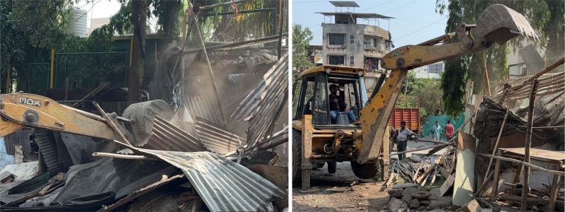 बेलापूर येथील १४५ अनधिकृत झोपड्या जमीनदोस्त