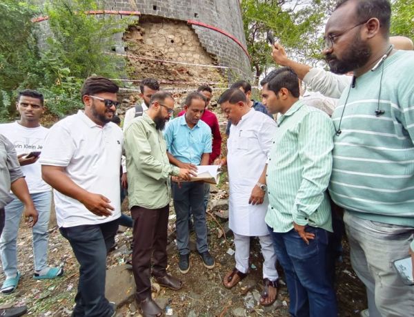 दुर्गाडी किल्ल्याच्या ढासळलेल्या बुरुजाची खा. सुरेश म्हात्रे यांच्याकडून पाहणी