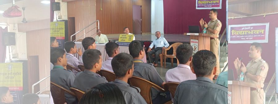 नवी मुंबई : नेरुळ येथील पुणे विद्यार्थी गृहाच्या विद्याभवन शिक्षण संकुलात १० जुलै रोजी जागरूक नवी मुंबईकर अभियान अंतर्गत सायबर क्राईम आणि सेक्युरिटी एक्स्पर्ट विशेष पोलीस अधिकारी डॉ. विशाल माने यांनी सर्व पालक, शिक्षक आणि विद्यार्थ्यांशी संवाद साधून सायबर सुरक्षा, व्यसनधिनता आणि विद्यार्थ्यांचे भविष्य घडण्यासाठी आवश्यक गोष्टींची सविस्तर माहिती दिली.