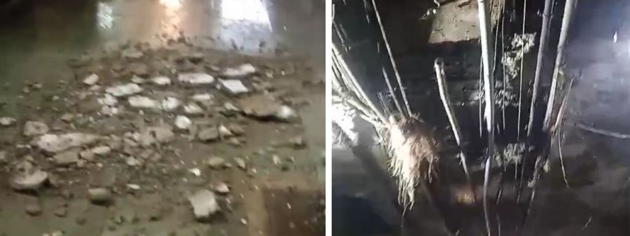 एपीएमसी मसाला बाजारात छताचे प्लास्टर जमिनीवर