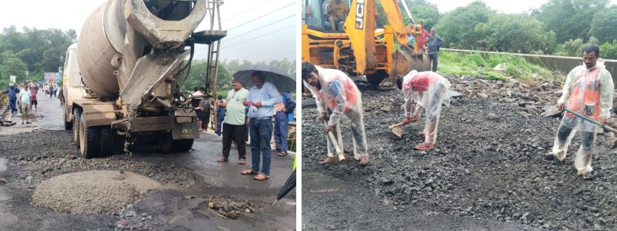 २६ जुलै रोजी पूर ओसरताच संबंधित विभागाकडून पुलाची पाहणी करण्यात आली असता पुलाला जोडणाऱ्या रस्त्यावर तडे जाऊन रस्त्याचा भाग खचला असल्याचे दिसून आले. तसेच पुलाला जोडणारा रस्ता आणि पुलाचे लोखंडी कठडे वाहून गेले. मात्र, राष्ट्रीय महामार्ग क्र.६६ ला जोडणाऱ्या या पुलाच्या दुरुस्तीचे काम तातडीने हाती घेण्यात आले आहे.