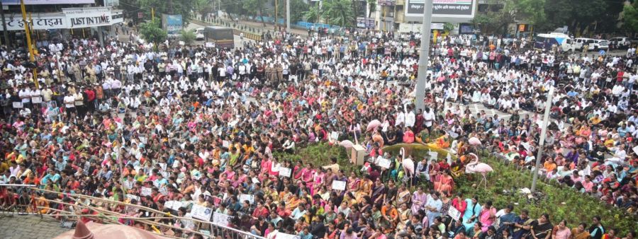 नवी मुंबई/वाशीः अक्षता आगासकर-म्हात्रे या विवाहितेवर अत्याचार करुन तिची हत्या करणाऱ्या नराधमांना फाशी देण्याच्या मागणीसाठी नवी मुंबईमध्ये २८ जुलै रोजी आक्रोश लाँग मार्च काढण्यात आला. कोपरखैरणे मधील तीन टाकी येथून वाशीतील छत्रपती शिवाजी महाराज चौकापर्यंत शांततेत निघालेल्या या ‘आक्रोश मार्च'मध्ये हजाराेंच्या संख्येने नवी मुंबईकर नागरिक सहभागी झाले होते. ‘जस्टीस फॉर अक्षता'च्या घोषणा यावेळी करण्यात आल्या. काळ्याफिती लावून सदर घटनेचा निषेधही करण्यात आला.