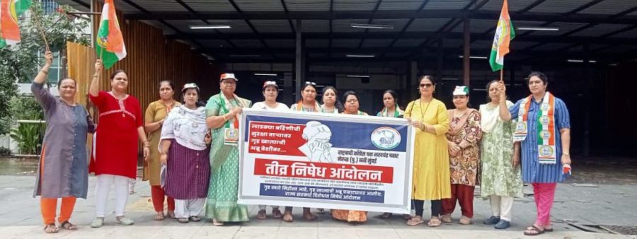 या आंदोलनात सौ. सलुजा सुतार यांच्यासह हिराबाई पाटील, अस्मिता साळगावकर, पुष्पा पावले, रेशमा चव्हाण, अश्विनी मिश्रा, वैशाली म्हाडगुत, मनाली सणस, प्रभा उनागर, भावीनी पांडव, तेजस्वी नाईक, संगीता बर्वे, संगीता जाधव, सायली गोडे, बबीता टंक, नरेश कालेकर, जितू कोळी, हिमेश पांडव आणि तेजस फणसे आदी सहभागी झाले होते.
