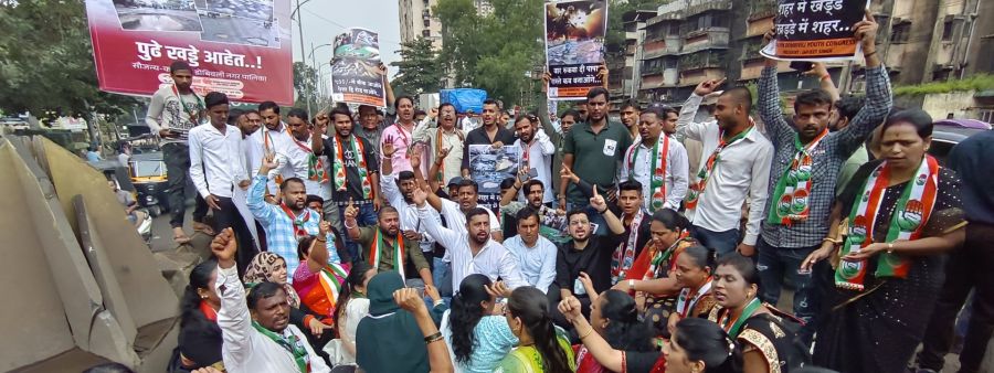 त्यामुळे या विरोधात ‘कल्याण शहर युवक काँग्रेस'च्या पुढाकाराने आंदोलन करण्यात आले. शहाड पुल परिसरातील रस्त्यावर असलेल्या खड्ड्यांमध्ये बसून या आंदोलनकर्त्यांनी प्रशासनाचा निषेध नोंदवला.