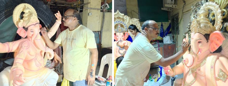 नवी मुंबईमध्ये दारावे, तुर्भे, बोनकोडे, घणसोली, कोपरखैरणे, ऐरोली, आदि ठिकाणी आजही असे कारखाने अपुरी जागा असताना आपल्या व्यवसायात तग धरुन आहेत. त्यामुळे सार्वजनिक गणेश मंडळांनी तसेच घरघुती गणपतीची बुकींग केलेल्या मूर्तींचे काम वेळेत पूर्ण व्हावे, यासाठी त्याच्या रंगरंगोटीचे काम करण्यासाठी कामगार राबत आहेत. तर गणेशोत्सव सण आठवड्यावर येऊन ठेपला असल्याने कारखान्यात दिवसरात्र काम सुरु आहे. गणपतीच्या मूर्तींवर शेवटचा हात फिरवणे, मूर्तीवर मोहक रंग चढविणे, डोळ्यांची आखणी, गणपतीच्या अंगावरील दागिन्यांवर बारीक कलाकुसर करणे, आदि कामे कामगार करीत आहेत, अशी माहिती ‘नवी मुंबई मुर्तीकार संघटना'चे अध्यक्ष संतोष चौलकर यांनी दिली.