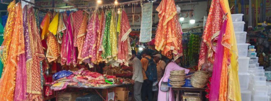 नवरात्री मध्ये नऊ दिवस नव रंगाच्या साड्या नेसण्याची क्रेझ काही वर्षांपासुन महिलांमध्ये वाढली आहे. त्यानुसार बाजारात नऊ रंगाच्या साड्यांचा कम्बो सेटच उपलब्ध झाला आहे. तर सध्या महिलांमध्ये सार्वजनिक कार्यक्रमासाठी एकाच रंगाच्या साड्या घेण्याची क्रेझ वाढत आहे. तसेच पारंपरिक पोशाखला देखील मागणी वाढली आहे. पुरुषांमध्ये देखील एकाच रंगाचे शर्ट, कुर्तीज घालण्याची आवड निर्माण झाली आहे. त्यामुळे बाजारात महिलांसोबत पुरुषांच्या कपड्यांना मागणी वाढली असल्याचे दुकानदारांकडून सांगण्यात आले.