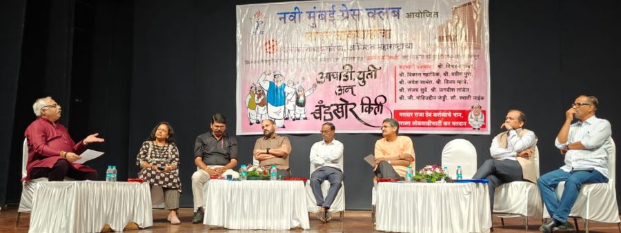 महाराष्ट्रातील विधानसभा निवडणूकीच्या पार्श्वभूमीवर ‘नवी मुंबई प्रेस क्लब'ने नवी मुंबईतील पत्रकारंच्या नजरेतून बेलापूर, ऐरोली, पनवेल आणि उरण या मतदारसंघातील राजकीय परिस्थिती जाणून घेण्यासाठी १५ वाशीतील विष्णुदास भावे नाट्यगृहात ‘आघाडी, युती अन् बंडखोर किती' या विषयावर चर्चासत्राचे आयोजन करुन लोकशाहीचा जागर घातला होता.