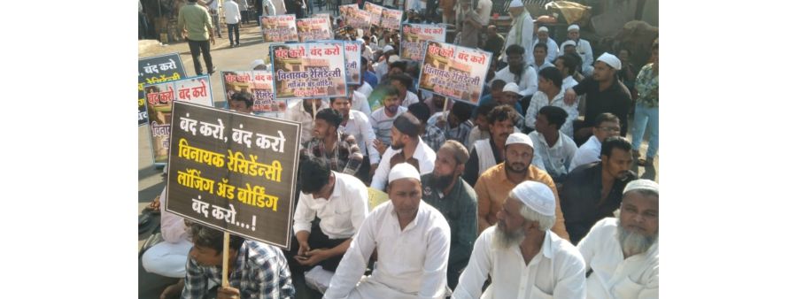 नवी मुंबई : मागील अनेक वर्षांपासून तुर्भे नाका येथे नवी मुंबई महापालिका प्रशासनाची परवानगी नसताना नवी मुंबईतील काही लोकप्रतिनिधींच्या आशीर्वादाने ‘विनायक रेसिडेन्सी लॉजिंग आणि बोर्डिंग' सुरु आहे. या विरोधात १३ डिसेंबर रोजी ‘रिपब्लिकन सेना'चे प्रदेश उपाध्यक्ष खाजामिया पटेल यांच्या नेतृत्वाखाली काही सामाजिक संस्था सदस्य आणि तुर्भे विभागातील नागरिकांनी रस्त्यावर उतरुन ‘विनायक रेसिडेन्सी लॉजिंग आणि बोर्डिंग' तात्काळ बंद करा, या मागणीची तड लावण्यासाठी तुर्भे नाका येथे धरणे आंदोलन केले.