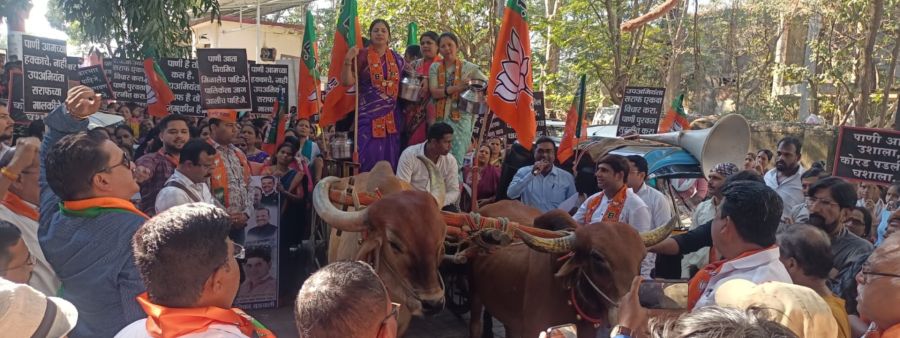 मागील अनेक महिन्यांपासून मांडा-टिटवाळा परिसरातील नागरिकांना पुरेशा प्रमाणात पाणी मिळत नसल्यामुळे नागरिकांची मोठी गैरसोय होत होती. याबाबत पाणी पुरवठा विभागाचे उपअभियंता कार्यकरी सराफ यांच्याकडे वारंवार पाठपुरावा करुनही कोणतीच उपायोजना करण्यात येत नव्हती. अखेर नागरिकांचा संयमाचा बांध फुटल्याने त्यांनी संतप्त होत ‘भाजपा'च्या साथीने रिकाम्या हंड्यासह ‘केडीएमसी'च्या अ-प्रभाग कार्यालयावर बैलगाडी मोर्चा काढला. या मोर्चाचे नेतृत्व ‘भाजपा'चे मोहना मंडळ अध्यक्ष शक्तीवान भोईर यांनी केले. दरम्यान, सदर पाणी टंचाईच्या समस्येकडे दुर्लक्ष केल्यास तसेच मागण्या लवकरात लवकर पूर्ण न झाल्यास महापालिका मुख्यालयावर मोठ्या संख्येने आंदोलनाचा इशारा माजी उपमहापौर उपेक्षा भोईर यांनी यावेळी दिला.