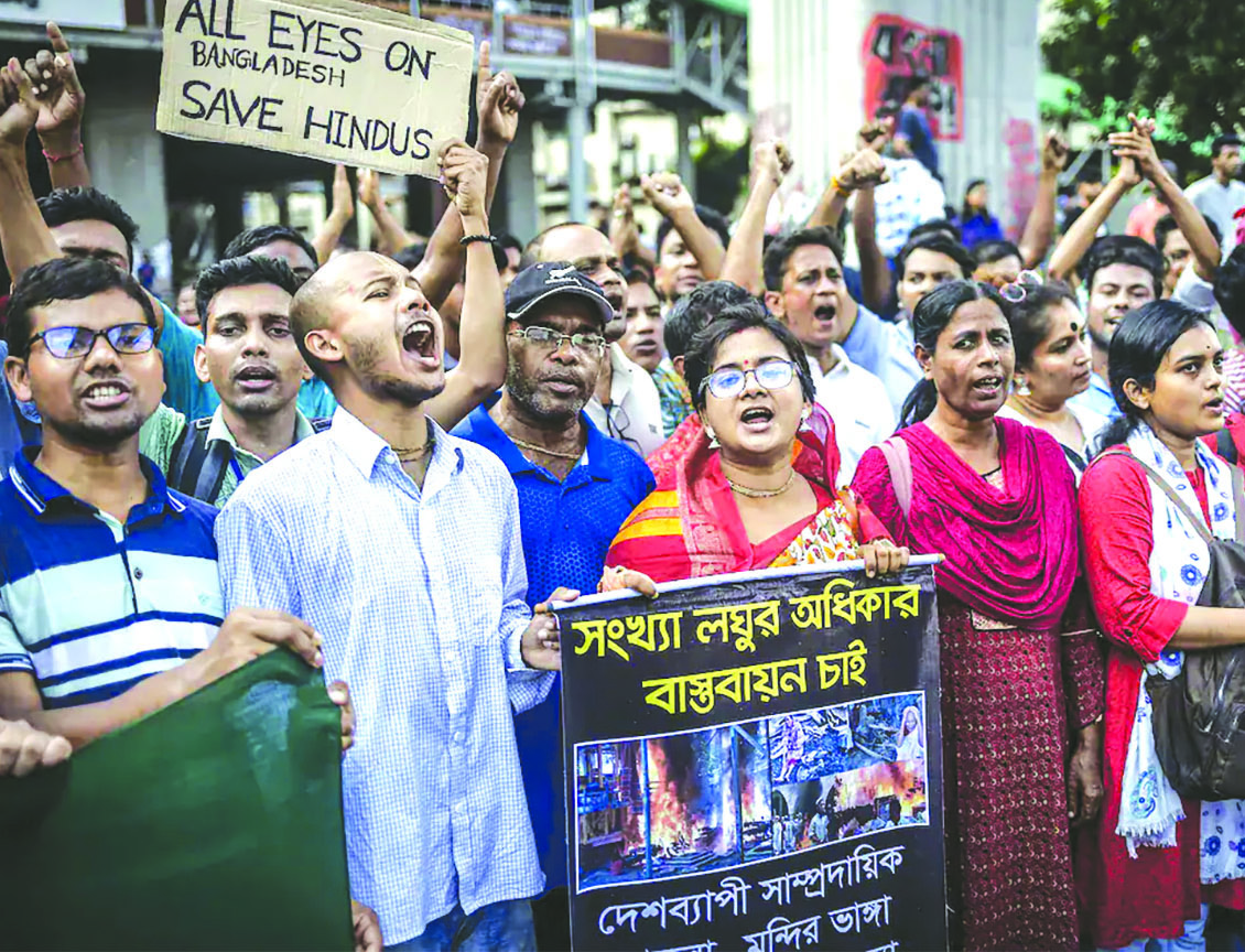 गतवर्षी ५ ऑगस्टला बांगला देशात हसीना शेख यांचे सरकार पडल्यानंतर देशभरात हिंसाचाराची लाट पसरली. सुरुवातीला आपापसांतील वाटणारा हा वाद हळूहळू तेथील हिंदूंच्या दिशेने वळला. स्थानिक हिंदूंना जाणीवपूर्वक लक्ष केले जाऊ लागले, हिंदूंना घरात घुसून मारहाण होऊ लागली, त्यांची घरे, दुकाने लुटून ती जाळण्यात येऊ लागली, त्यांच्या जमिनी हडपण्यात आल्या, त्यांना त्यांच्याच घरातून हाकलले जाऊ लागले. हिंदूंच्या मंदिरांवर हल्ले होऊ लागले, देवतांच्या मूर्तींची तोडफोड होऊ लागली, हिंदू स्त्रियांवर, बालकांवर अत्याचार होऊ लागले. ऑगस्ट महिन्यात देशभरात पसरलेले हे हिंदुविरोधी लोण आजही कायम आहे.