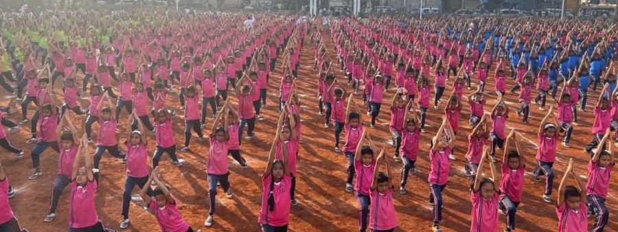 प्रजासत्ताक दिनी रा. फ. नाईक विद्यालयात योगासनाचा जागतिक विक्रम