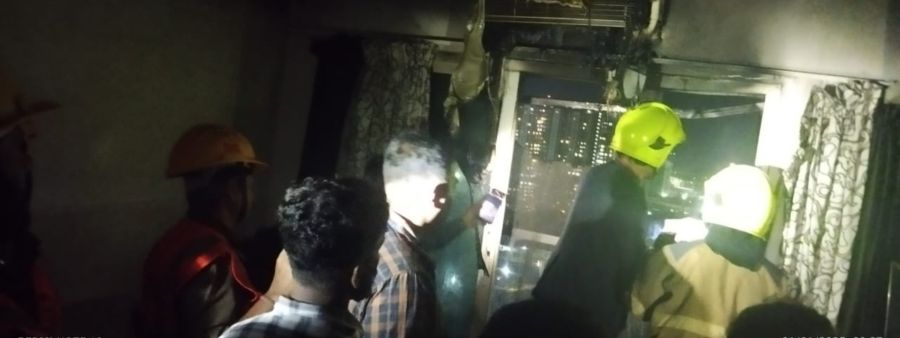 ठाणे (पश्चिम) शहरातील बाळकुम येथील तळ अधिक ३० मजली ओक बिल्डिंग मधील सी विंग मधील २२व्या मजल्यावरील रुम नंबर-२२०३ मध्ये राहणाऱ्या हिरल लोधाया यांनी हॉलमध्ये लावलेल्या दिव्याने पडद्याला आग लागली. या घटनेची माहिती मिळताच घटनास्थळी धाव घेऊन अग्निशमन दलाचे जवान, आपत्ती व्यवस्थापन कक्ष कर्मचारी यांनी स्थानिक नागरिकांच्या मदतीने आगीवर नियंत्रण मिळवले. या आगीत रुम मधील एसी, सीलिंग, सोफा आणि वायरिंग जळून नुकसान झाले आहे.