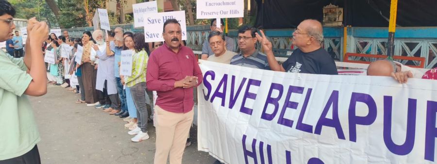‘मानवी साखळी'द्वारे बेलापूर डोंगर उतारावरील अतिक्रमणांना विरोध