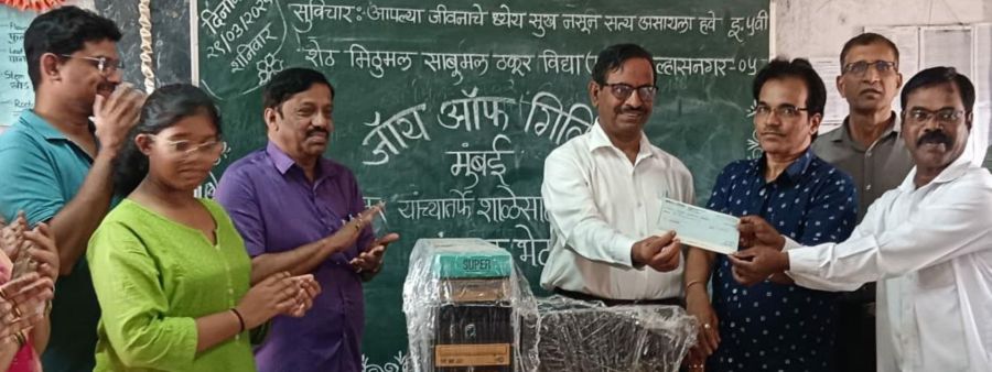 उल्हासनगरः ‘जॉय ऑफ गिविंग ग्रुप मुंबई' च्या वतीने २९ मार्च रोजी उल्हासनगर पूर्व येथील ठाकूर जागृती शाळेतील इयत्ता पहिली ते सातवीतील २०० विद्यार्थ्यांना किराणा किट, संगणक आणि शाळा डागडुजीसाठी दहा हजार रुपये देऊन सहकार्य करण्यात आले.