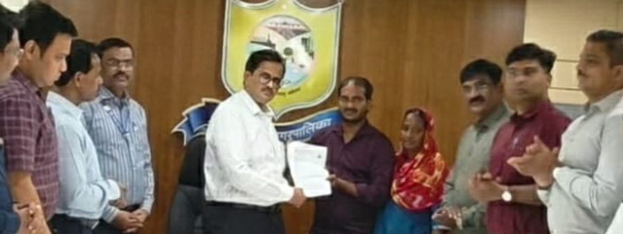 पनवेल : पूर्वाश्रमीच्या पनवेल नगरपरिषद तसेच पनवेल महापालिका आस्थापनेवर सफाई कामगार या पदावर असलेल्या सुनीता पारचे यांची १० मार्च २०२५ रोजी स्वेच्छा सेवानिवृत्ती झाली. यानंतर तातडीने आयुक्त मंगेश चितळे यांच्या निर्देशानुसार लाड पागे समितीच्या शिफारसीनुसार सुनीता पारचे यांचा मुलगा विजय पारचे याला तातडीने नोकरी देण्याचा अर्ज विचारात घेण्यात आला. त्यानुसार २ एप्रिल रोजी आयुक्त मंगेश चितळे यांच्या हस्ते या वारसास नियुक्ती पत्र देण्यात आले.